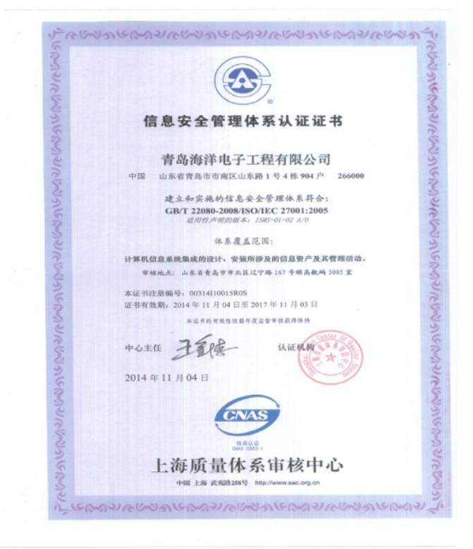 8)ISO27001信息安全管理體系認證證書